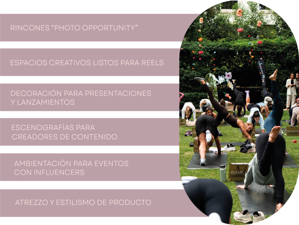 Trabajamos creando espacios visuales alineados con la identidad de cada marca, cuidando cada detalle para garantizar un resultado profesional, consistente y adecuado tanto para invitados como para generación de contenido.